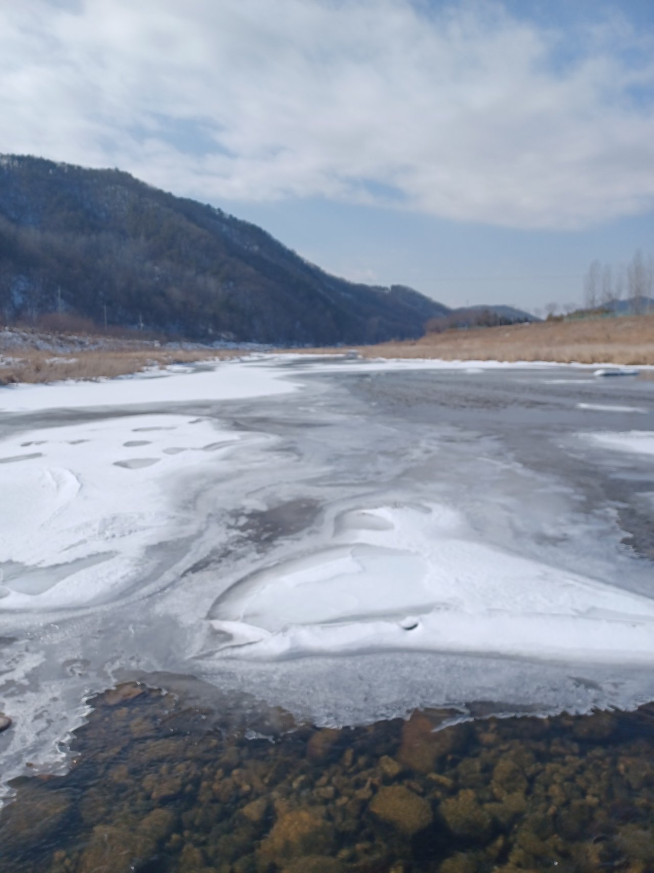 강 언저리에는 매얼음이 얼었다.